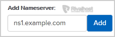6. Navigate to "Add Nameserver" and enter our name server in the text field (for example ns1.example.com). Then click on the "Add" button. Repeat this to add our 2nd name server.