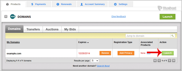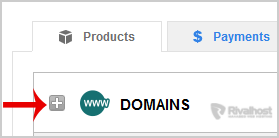 3. After a successful login, click on the + (plus) icon next to Domains in the "Products" tab.