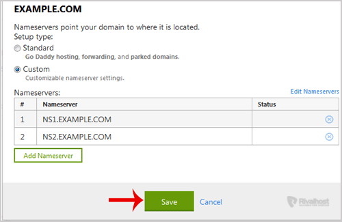 6. In "Nameservers Settings", select "Custom" and then click on the "Edit Nameservers" Link.