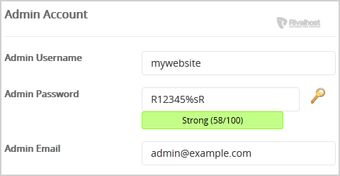 - Admin Username: Your new Vanilla username (for security reason do not use the "Administrator" or the "Admin" username.)