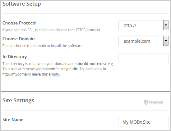 • In Directory: If you want to install this in a directory, for example example.com/directory, enter the directory name. Otherwise, leave this blank to install in your main domain example.com