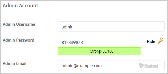 • Admin Username: Your new MODX username (for security reason do not use the "Administrator" or the "Admin" username.)