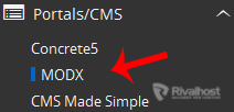 4. On the left side of your screen you should locate the "Portal/CMS" category. Click on it and then click on the "MODX" link that will appear.