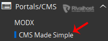 4. On the left side of your screen you should locate the "Portal/CMS" category. Click on it and then click on the "CMS Made Simple" link that will appear.