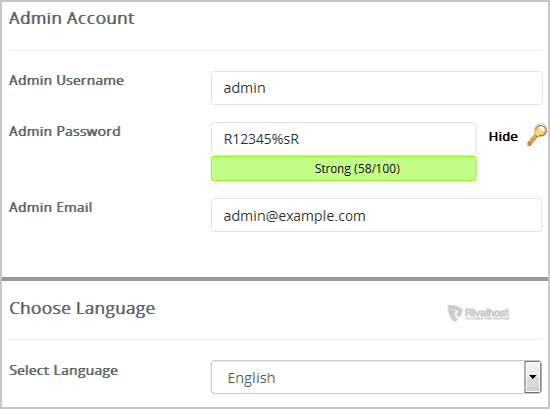 • Admin Email: Your e-mail address.