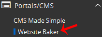 4. On the left side of your screen you should locate the "Portal/CMS" category. Click on it and then click on the "Website Baker" link that will appear.