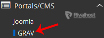 4. On the left side of your screen you should locate the "Portal/CMS" category. Click on it and then click on the "GRAV" link that will appear.