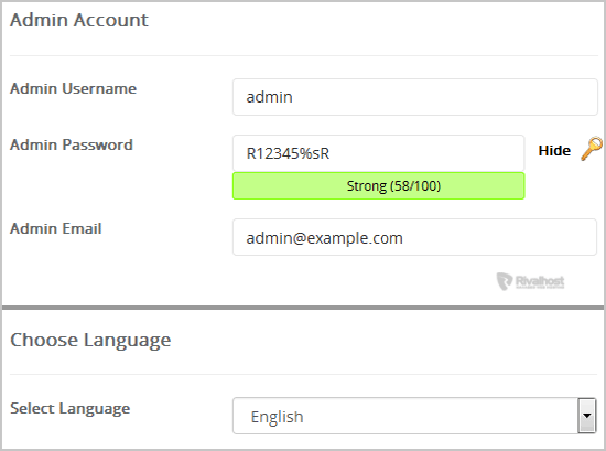 • Admin Username: Your new Kirby username (for security reason do not use the "Administrator" or the "Admin" username.)