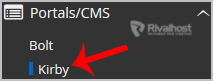 4. On the left side of your screen you should locate the "Portal/CMS" category. Click on it and then click on the "Kirby" link that will appear.