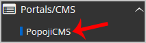 4. On the left side of your screen you should locate the "Portal/CMS" category. Click on it and then click on the "PopojiCMS" link that will appear.