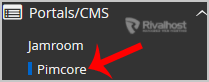 4. On the left side of your screen you should locate the "Portal/CMS" category. Click on it and then click on the "Pimcore" link that will appear.