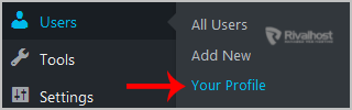 2. Under the dashboard menu, hover your mouse over "Users" and then click on "Your Profile".