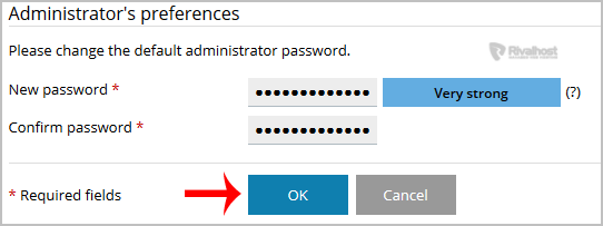 Step 6: Scroll down to the end of page, generate a new password or enter it manually, then press "OK". Make sure that you stored this password in a safe place. In the next step, enter your administrative information such as an email address, a contact name and then press "OK".