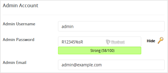 • Admin Username: Your new Anchor username (for security reason do not use the "Administrator" or the "Admin" username.)
