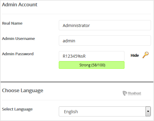 • Admin Username: Your new PluXml username (for security reason do not use the "Administrator" or the "Admin" username.)